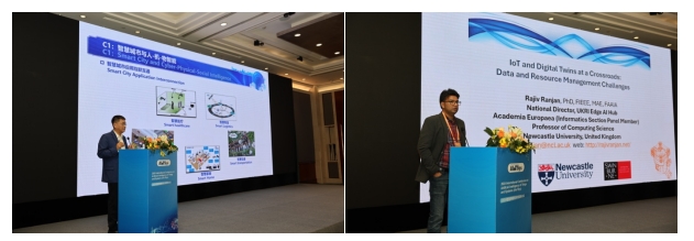 加拿大工程院院士、郑州大学学术副校长杨天若教授,欧洲科学院院士、纽卡斯尔大学教授Rajiv Ranjan,中国科学技术大学计算机学院执行院长李向阳教授(谈海生教授代)以及浙江大学控制学院常务副院长程鹏教授作大会主旨报告。