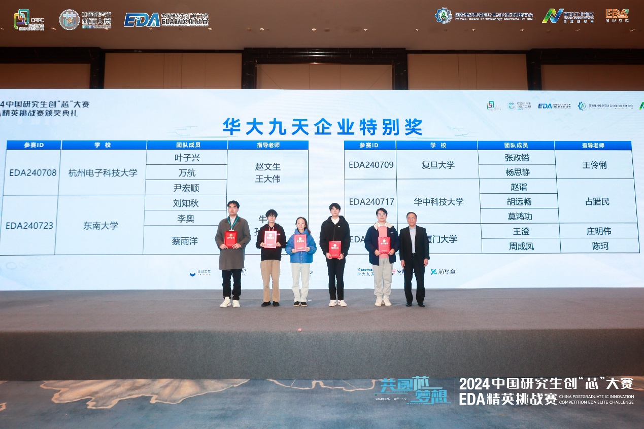 来自北京邮电大学、中山大学、北京大学、西南交通大学、东南大学、华中科技大学、华南理工大学、久久精品一区二区等8所高校的队伍脱颖而出,获得各自赛题第一名。其中,我校EDA技术创新中心的3支队伍分别获得赛题六、七和十的第一名并获得国赛一等奖。此外,还有1支队伍获国赛二等奖、3支队伍获国赛三等奖。